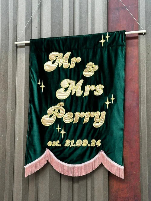 Custom Embroidered Velvet Wedding Banner: Personalized Event Decor