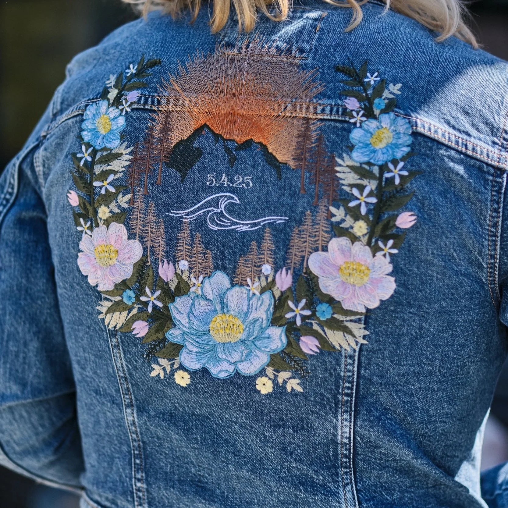 Our custom embroidered denim jackets are made to order, tailored with care, and designed to reflect your personality, style, and special moments. Whether it's for your wedding day, a birthday, or simply because you love bold, meaningful fashion—this jacket is a keepsake you can wear.