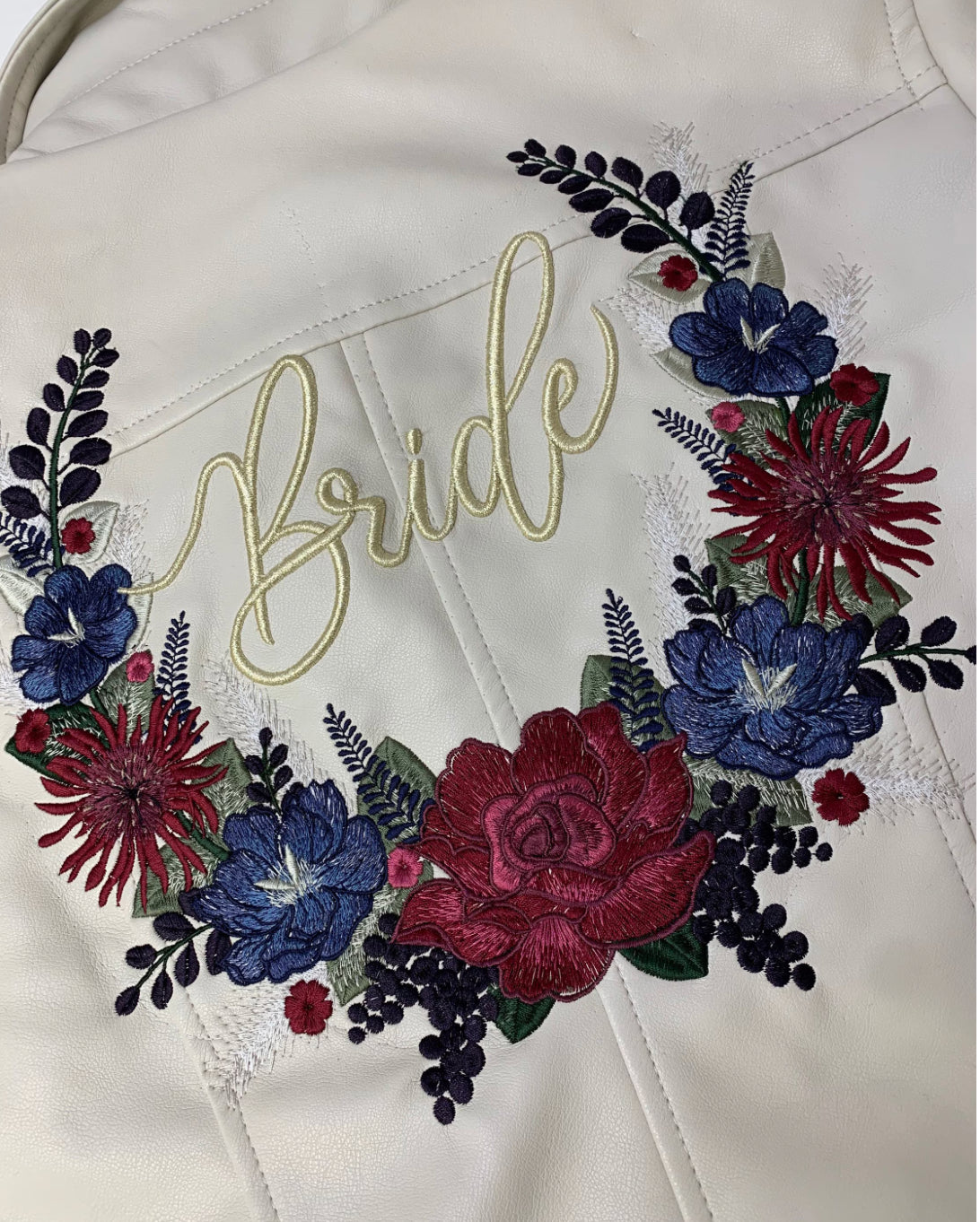 Work with us to customise your own bridal jacket to match your colour theme and new name.