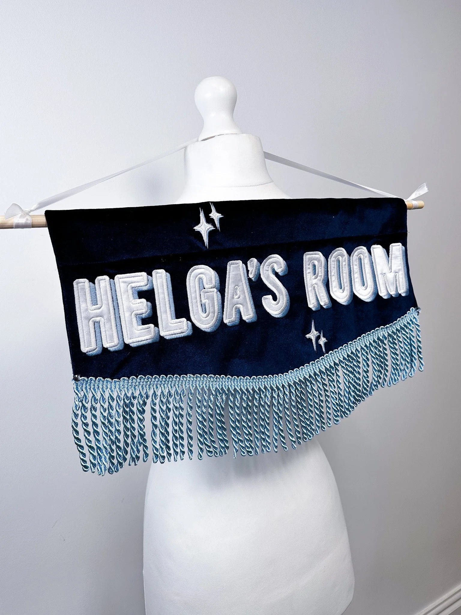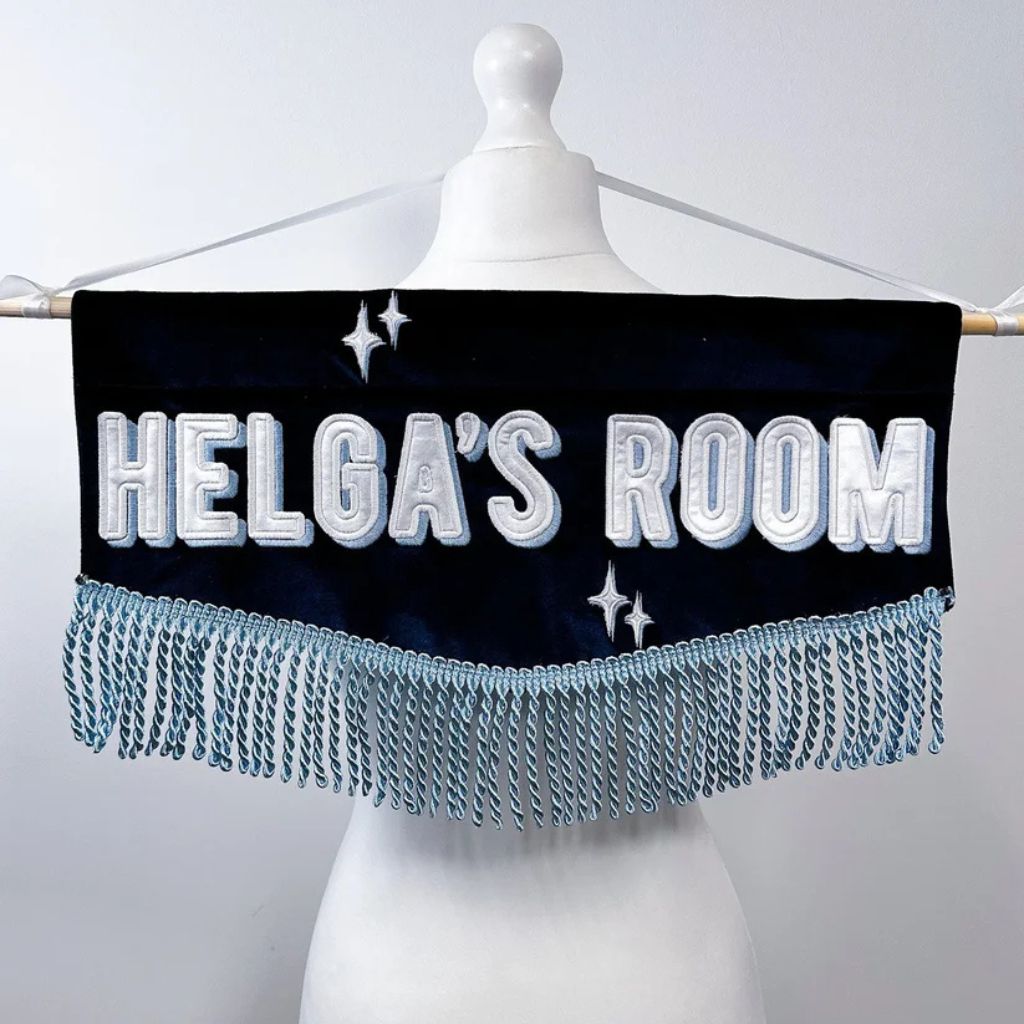 This customized embroidered banner is the perfect small accent to add a personal touch to any space! Crafted with quality fabrics and intricate stitching, it’s designed with your chosen text, colors, and motifs, creating a one-of-a-kind piece just for you. Ideal for celebrating special moments, adding warmth to your decor, or giving as a thoughtful gift, this banner brings a unique, handcrafted charm to any room.