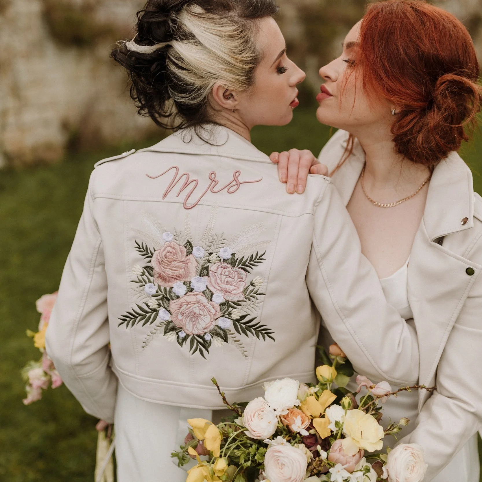 Custom Embroidered Faux Leather Jackets for Brides & Beyond